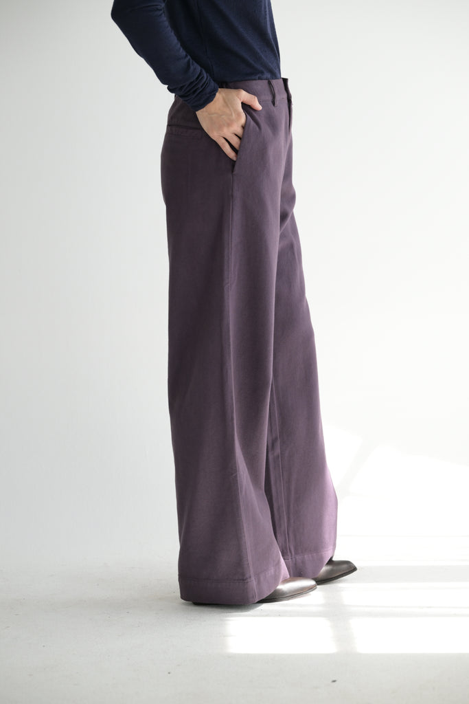 Labo Art Panta Pandora in Sparrow constructed in a soft brushed flannel cotton. The pants feature a button/zip closure, elastic waist in back (fixed waist in front). Side pockets and back pockets.