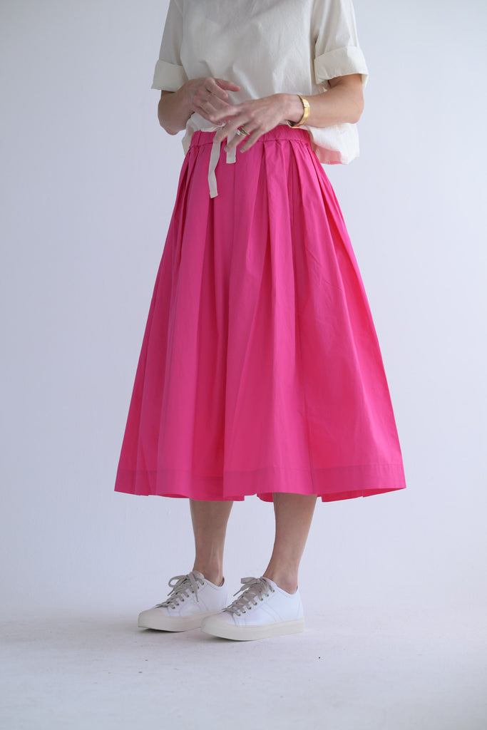Casey Casey simple rideaux skirt in light cotton poplin with a washed finish. Features an elastic waist with drawstring. Pleats on the front and back. Front pockets.