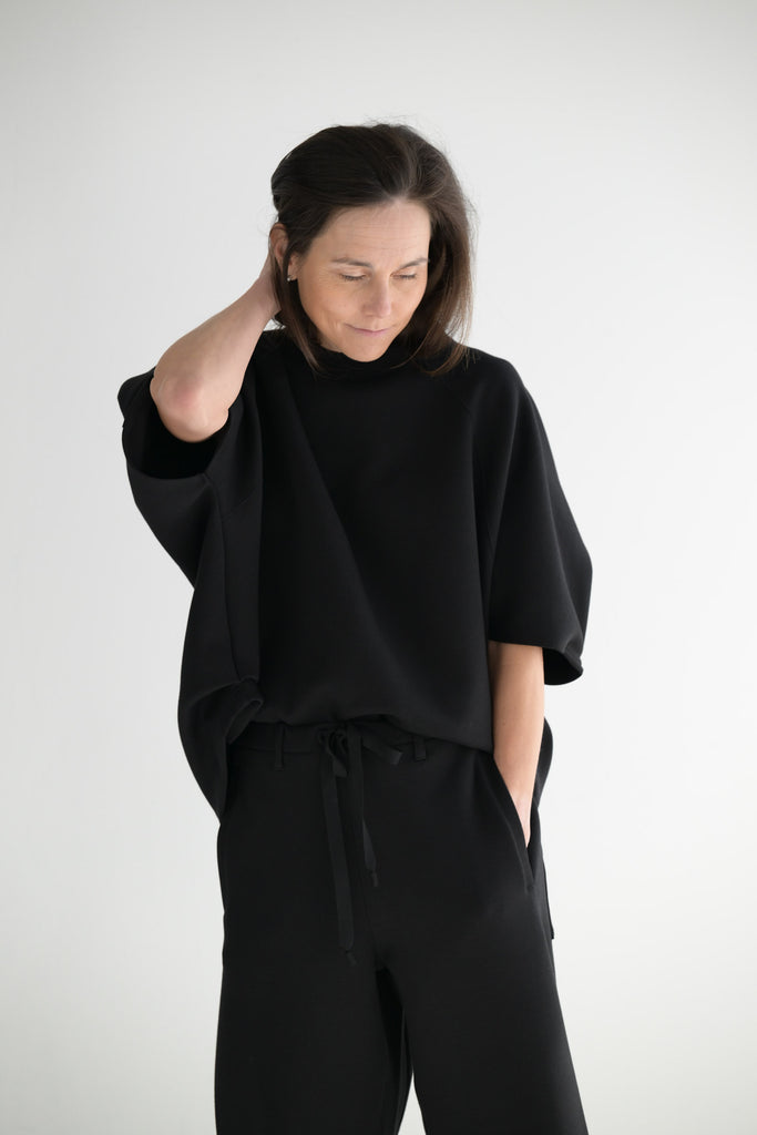 COG the Big Smoke Hellen Pentagon top in airy cotton double jersey. Crew neck, elbow length sleeves, high and low hem design.