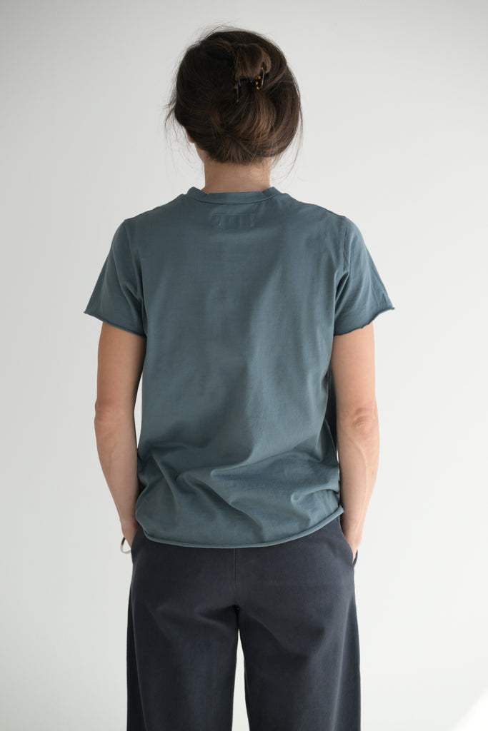 LaboArt Rico tee is their tried and true short sleeve tee. Made in 100% Japanese cotton. Features a finished neckline and the sleeve and hem are left unfinished.
