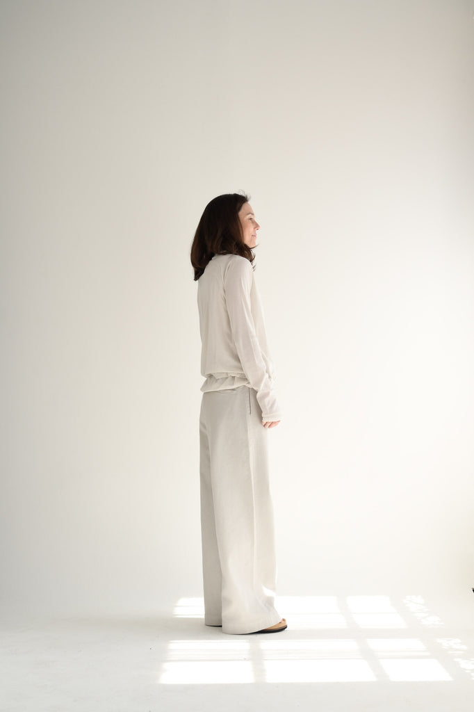 Cog Nadine V-neck cardigan is offered in a super lightweight cotton jersey.  Designed with a relaxed fit in the body and sleeves which are elegantly tapered from the elbow down. The square armholes create a distinctive silhouette with compact shoulders, while ensuring a comfortable fit beneath the arms. Thumbholes at the cuffs add functionality and style.