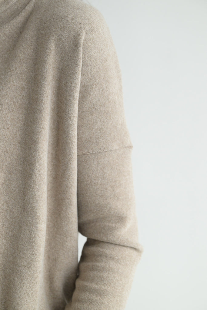 Album pullover with a turtleneck and oversized silhouette in plush and soft stretch cotton blend jersey. Features dropped shoulders. Relaxed fit.